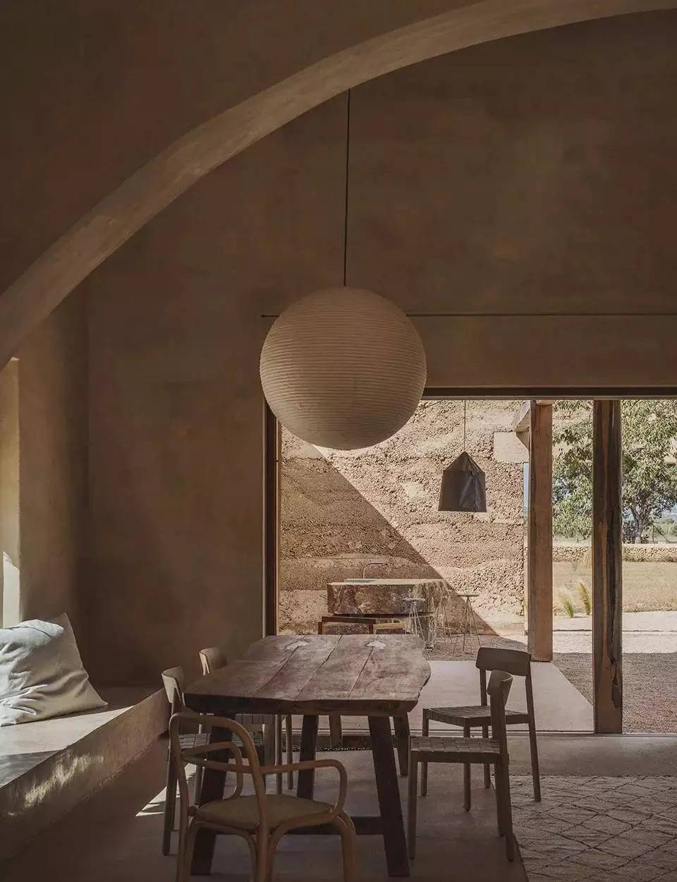 别觉得夯土风就是“土气”的代表!丹麦品牌Vipp在墨西哥沙漠打造的夯土民宿,粗犷的土墙搭配极简家具,随手一拍便是杂志大片。国内设计师更是创意十足:原木家具搭配夯土墙面,再摆放几盆绿植,瞬间将“田野搬进家中”,让都市人在家就能享受“森系疗愈”。